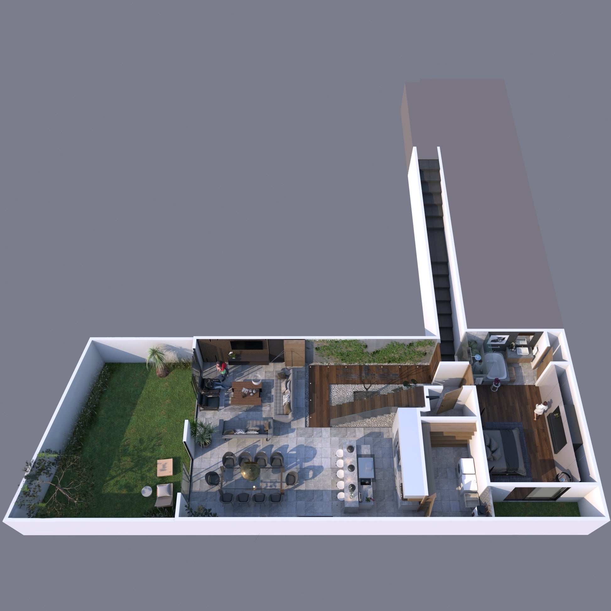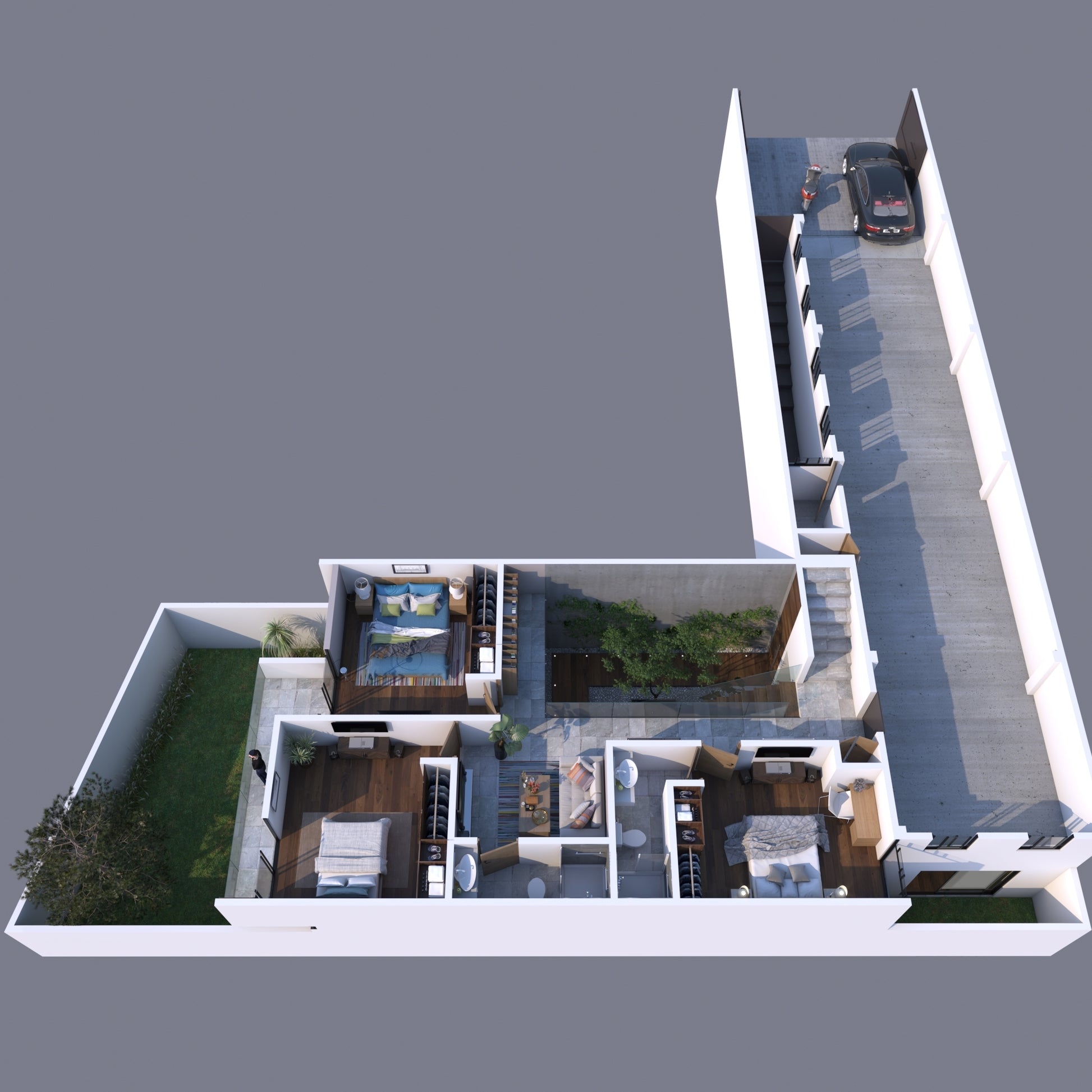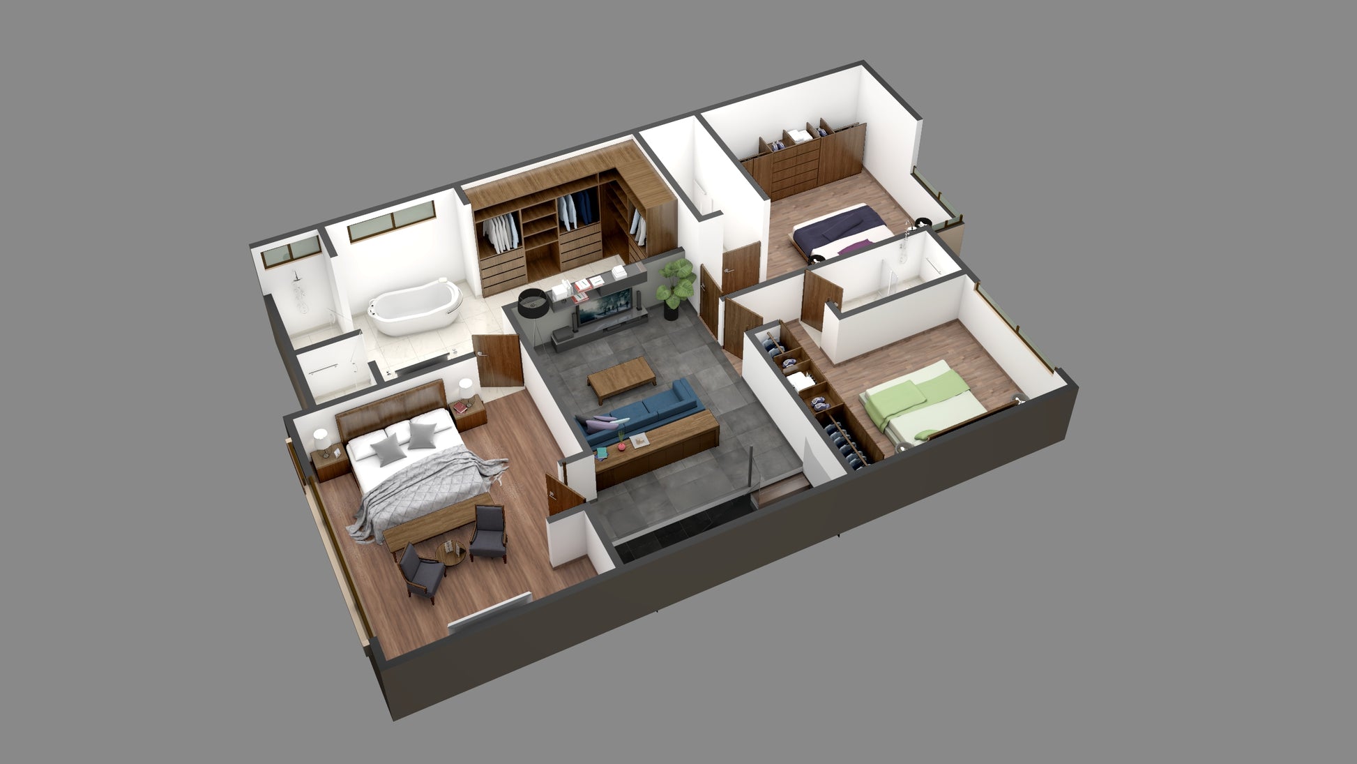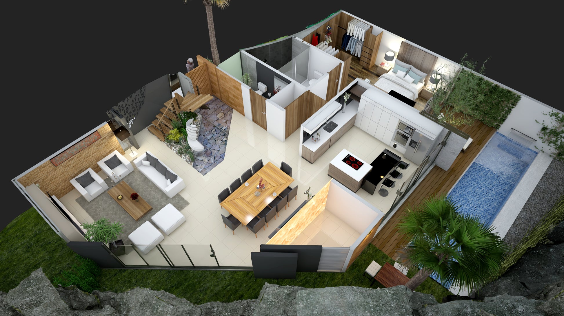 Este es un producto que se utiliza en prácticamente todos los brochure o flyers de comercialización de inmuebles, así como fichas técnicas y manuales, ya que muestra la distribución de la edificación en planta de una manera muy clara para todo tipo de cliente, los materiales a utilizar y dá una idea más acertada del tamaño de los espacios, al contar con mobiliario a escala, lo que genera que se entienda de manera sencilla el funcionamiento de los espacios.